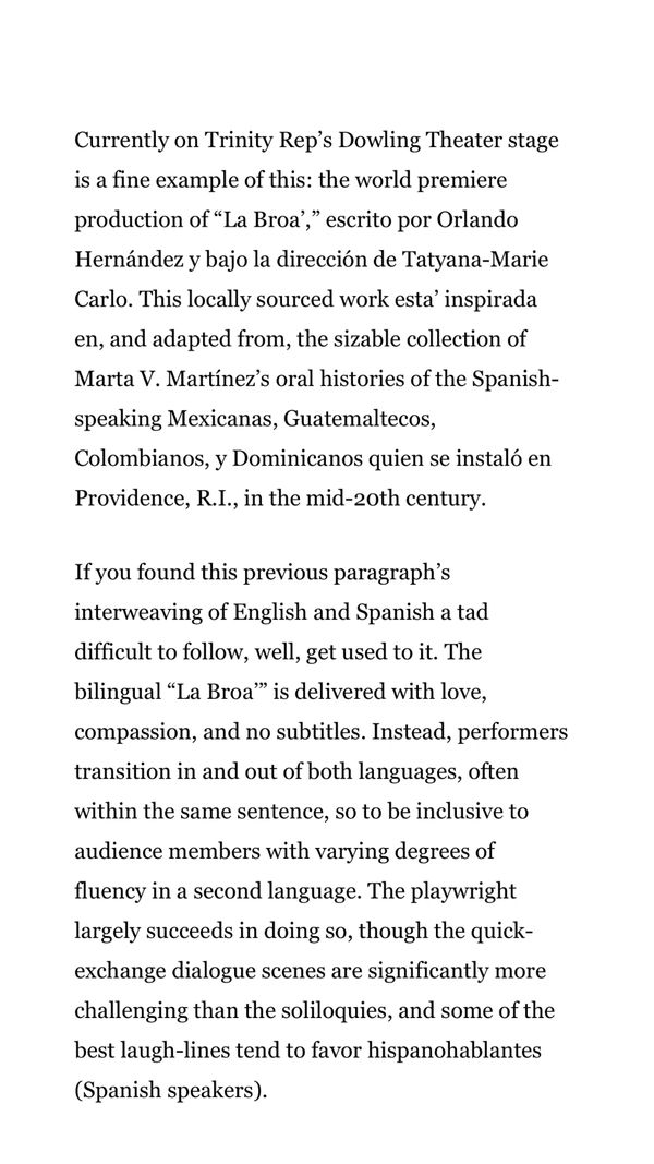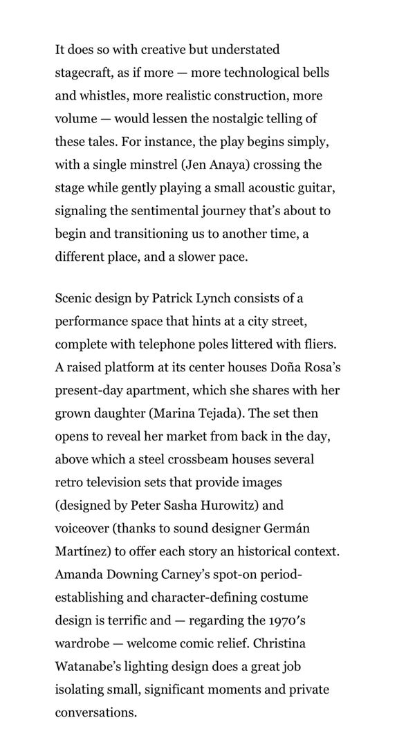Alcántara communicates a deep insight, not only into Claudia, but, into the characters that she shares the stage with as well. Her performance alone, is worth the price of admission."